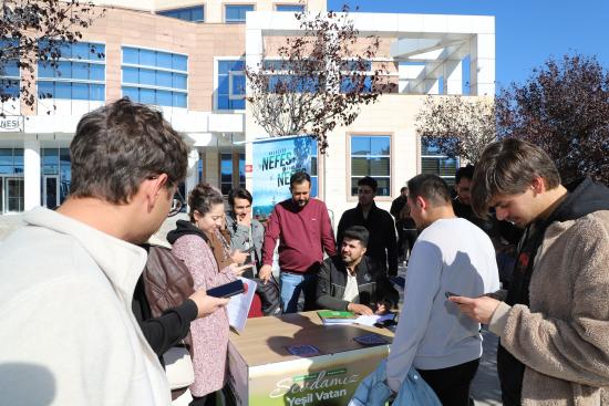 Üniversite personeli ve öğrenciler, gelecegenefes.gov.tr sistemiyle entegre çalışan karekod uygulaması sayesinde isim ve iletişim bilgilerini girerek fidan sahiplenme işlemlerini kısa sürede tamamladı. “Geleceğe Nefes – Yeşil Vatan Seferberliği” kapsamında sahiplenilen fidanlar, 11.11.2025 tarihinde tüm Türkiye ile birlikte Nevşehir’de belirlenen alanlarda toprakla buluşacak. Kampanya, başta orman yangınlarında zarar gören alanların yeniden yeşertilmesi ve gelecek nesillere daha yaşanabilir bir çevre bırakılması hedefiyle önem taşıyor.